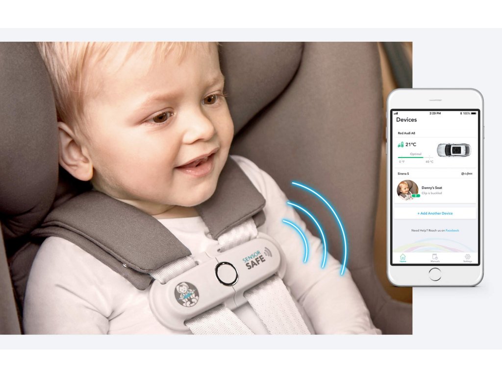 Klid pro vás, větší bezpečnost pro vaše dítě. Po připevnění k systému pásů dětské autosedačky lze bezpečnostní sadu SensorSafe 4 v 1 propojit s vaším chytrým telefonem a ten vás upozorní na kritické situace, jako například: pokud je dítě ponecháno v autě, pokud se teplota v autě příliš zvýší nebo sníží, pokud dítě odepne sponu nebo pokud sedí příliš dlouho.